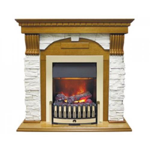 Портал каминокомплекта «Dublin», оформленный очагом «Opti-Myst Danville», выполнен с использованием материала, имитирующего сланец белого цвета. В совокупности с цветом светлой древесины, в котором выполнены декоративные элементы, это придает внешнему виду камина более интересный и привлекательный вид. Резкая рваная структура сланца придает камину максимальную схожесть с классическими очагами, устанавливаемыми в сельских домах старинной Европы.